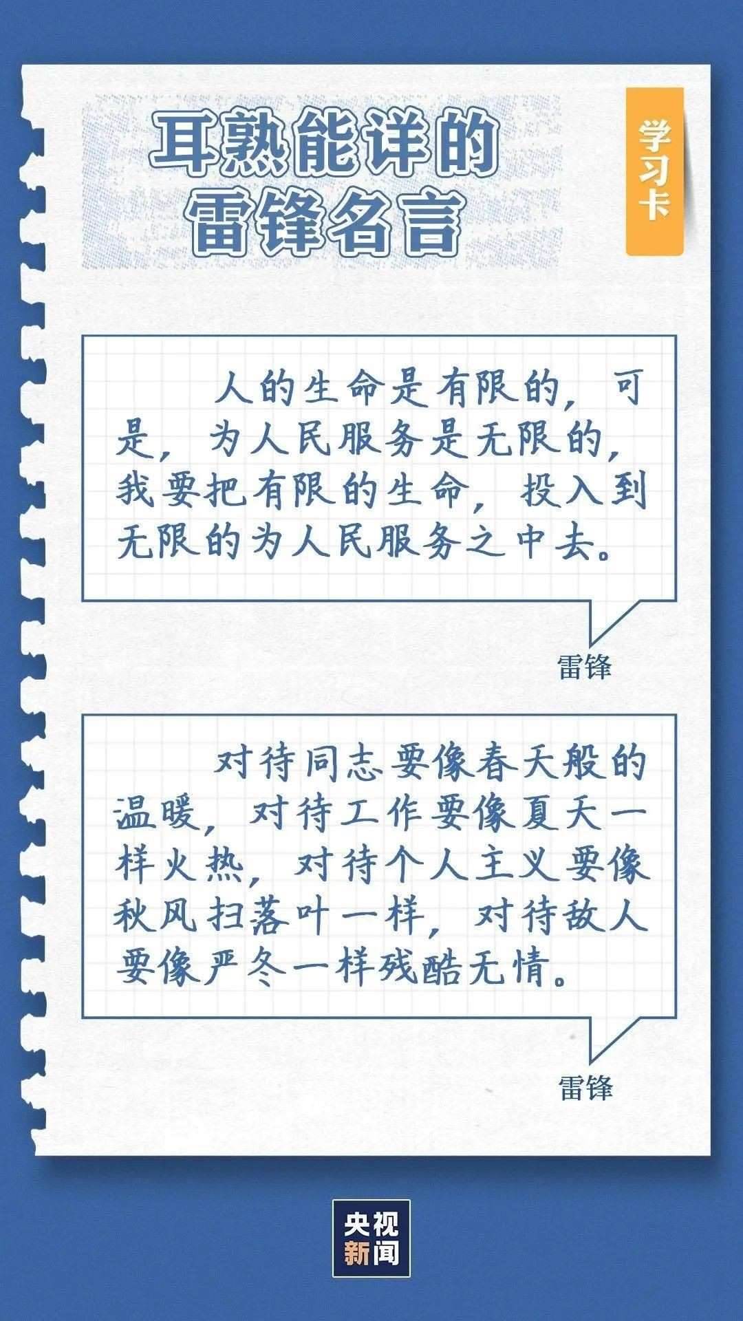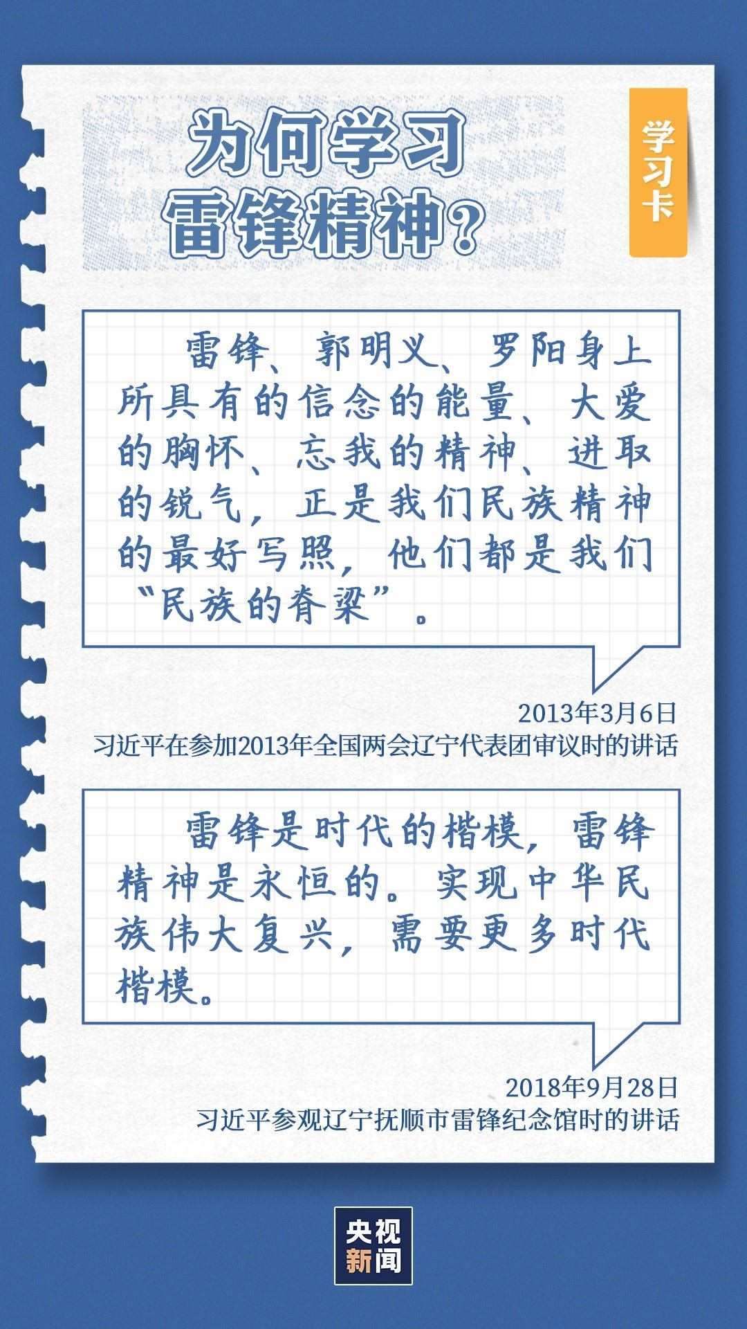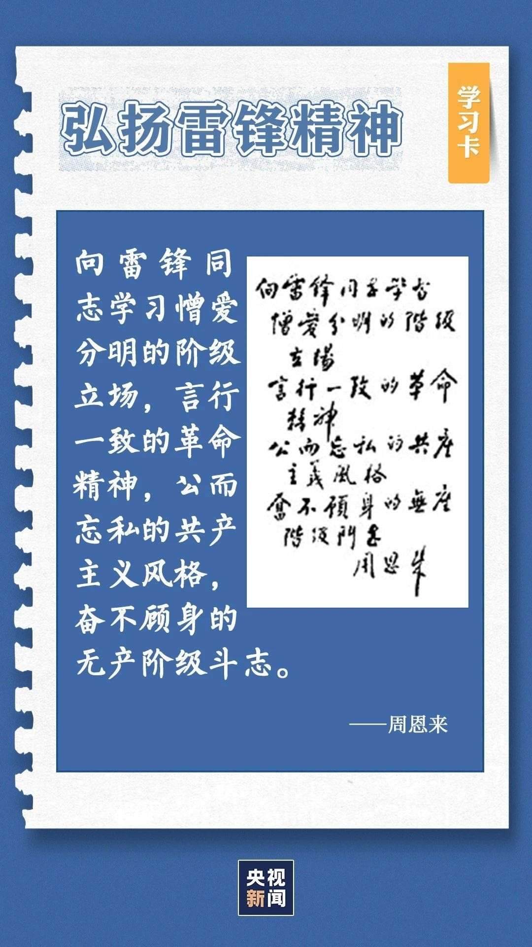 中共中央總書記、國(guó)家主席、中央軍委主席習(xí)近平近日作出重要指示指出,今年是毛澤東等老一輩革命家為雷鋒同志題詞60周年。60年來,學(xué)雷鋒活動(dòng)在全國(guó)持續(xù)深入開展,雷鋒的名字家喻戶曉,雷鋒的事跡深入人心,雷鋒精神滋養(yǎng)著一代代中華兒女的心靈。實(shí)踐證明,無(wú)論時(shí)代如何變遷,雷鋒精神永不過時(shí)。在新時(shí)代新征程上,如何弘揚(yáng)雷鋒精神?點(diǎn)擊學(xué)習(xí)卡↓