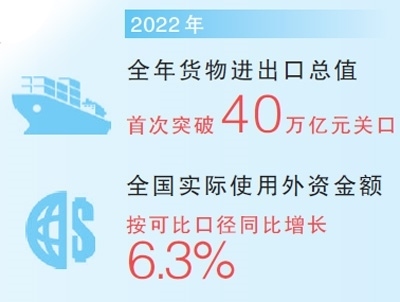 開放發(fā)展闊步向前。加快推進(jìn)高水平對外開放,2022年外貿(mào)外資再創(chuàng)歷史新高,我國正持續(xù)成為全球投資興業(yè)的熱土。