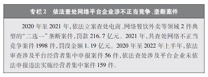 保障公平競爭的網(wǎng)絡(luò)市場環(huán)境。隨著網(wǎng)絡(luò)平臺企業(yè)不斷擴(kuò)展自身的體量和實(shí)力,“掐尖式并購”、無正當(dāng)理由屏蔽鏈接、“二選一”、大數(shù)據(jù)殺熟、流量挾持等妨礙市場公平競爭的問題也逐漸凸顯。中國積極回應(yīng)人民群眾訴求,在支持網(wǎng)絡(luò)平臺企業(yè)創(chuàng)新發(fā)展的同時,依法規(guī)范和引導(dǎo)資本健康發(fā)展,采取多種治理平臺競爭失序的執(zhí)法舉措。聚焦大型網(wǎng)絡(luò)平臺價格欺詐、低價傾銷等重點(diǎn)問題,通過行政約談、行政指導(dǎo)、規(guī)則指引等多種監(jiān)管手段,整治壟斷和不正當(dāng)競爭行為。圍繞民生、金融、科技、傳媒等重點(diǎn)行業(yè),依法審查涉及平臺經(jīng)營者集中案件,防止可能妨礙市場競爭和創(chuàng)新發(fā)展的并購行為,引導(dǎo)網(wǎng)絡(luò)平臺企業(yè)增強(qiáng)合規(guī)意識,規(guī)范自身經(jīng)營行為。通過一系列行動,平臺經(jīng)濟(jì)市場環(huán)境不斷優(yōu)化,公平競爭的行業(yè)生態(tài)穩(wěn)步向好,中小企業(yè)獲得更廣闊的發(fā)展空間,統(tǒng)一、開放、公平、競爭、有序的網(wǎng)絡(luò)競爭環(huán)境正在形成。