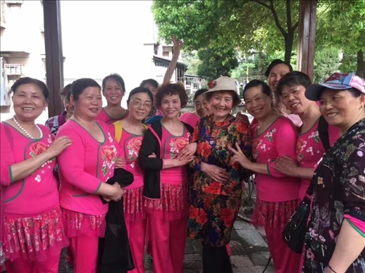 2017年,李淑范(左五)和社區(qū)舞蹈隊同伴們在一起