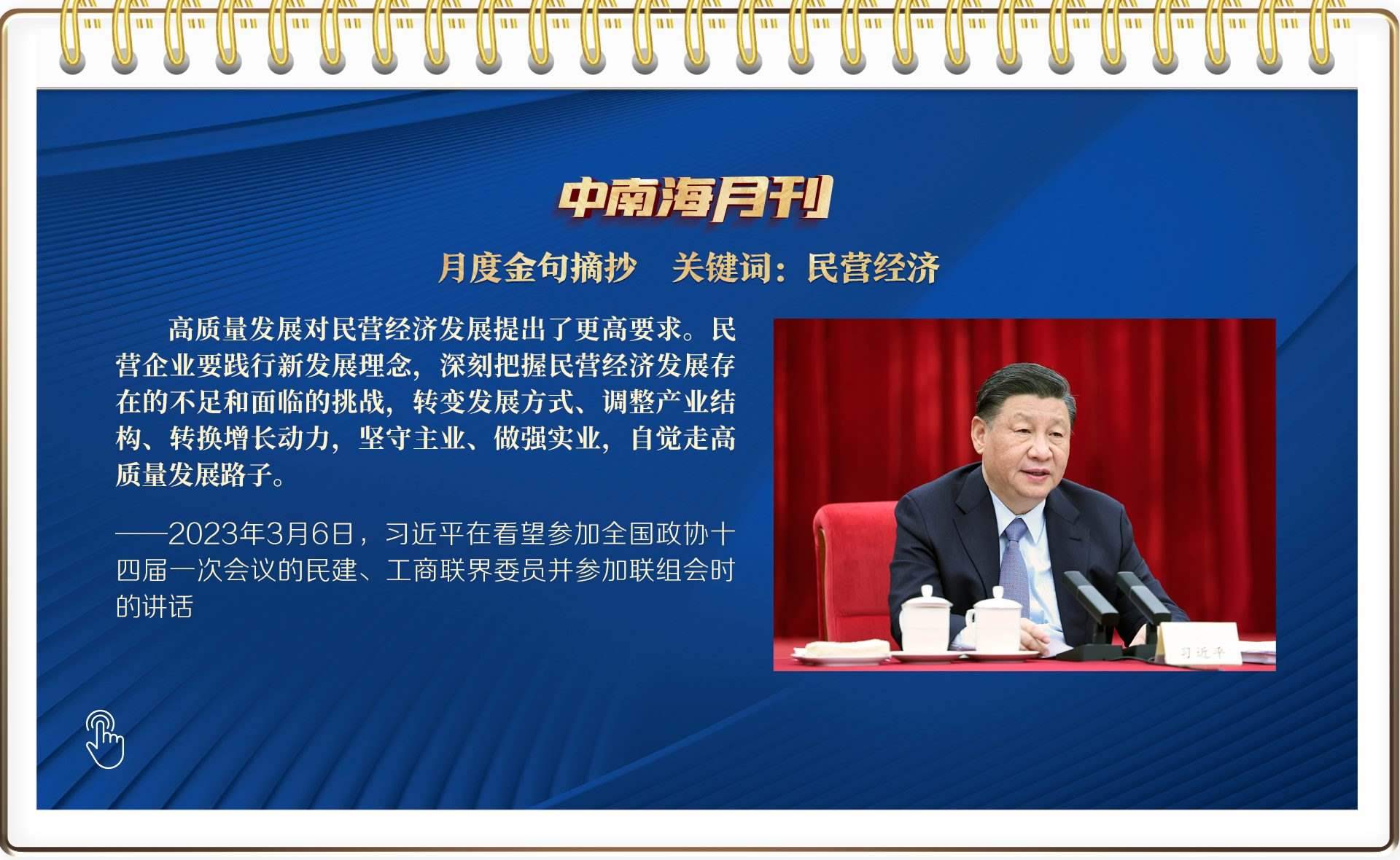 次日,總書記參加以經濟界人士為主的民建、工商聯(lián)界委員聯(lián)組會。春日的暖陽中,北京友誼賓館聚英廳內討論熱烈。迎著委員們熱切的目光,總書記為民營企業(yè)和民營企業(yè)家提振信心:“始終把民營企業(yè)和民營企業(yè)家當作自己人”“放開手腳,輕裝上陣,專心致志搞發(fā)展”“在民營企業(yè)遇到困難的時候給予支持,在民營企業(yè)遇到困惑的時候給予指導”……聲聲關切,統(tǒng)籌破與立,把握制與治。其落點,也在高質量發(fā)展。