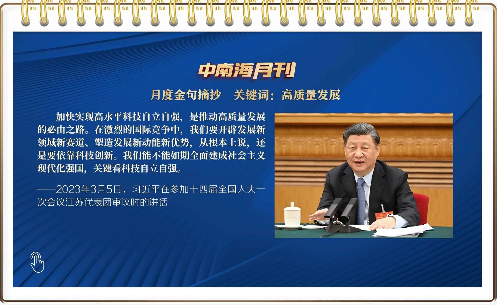 5日,今年全國兩會首次到團組,總書記以高質量發(fā)展為題,從“制造業(yè)必須筑牢”聊到農業(yè)現(xiàn)代化,再談到太湖水質……他詳細闡述未來中國高質量發(fā)展的發(fā)力點——高水平科技自立自強、加快構建新發(fā)展格局、推進農業(yè)現(xiàn)代化、人民幸福安康,為未來中國發(fā)展繪就新圖景。