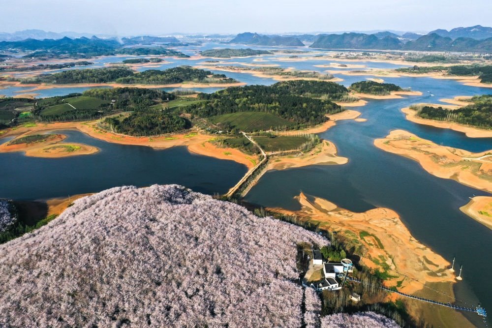 貴州省貴安新區(qū)櫻花園(無人機照片,2022年3月17日攝)。新華社記者 歐東衢 攝