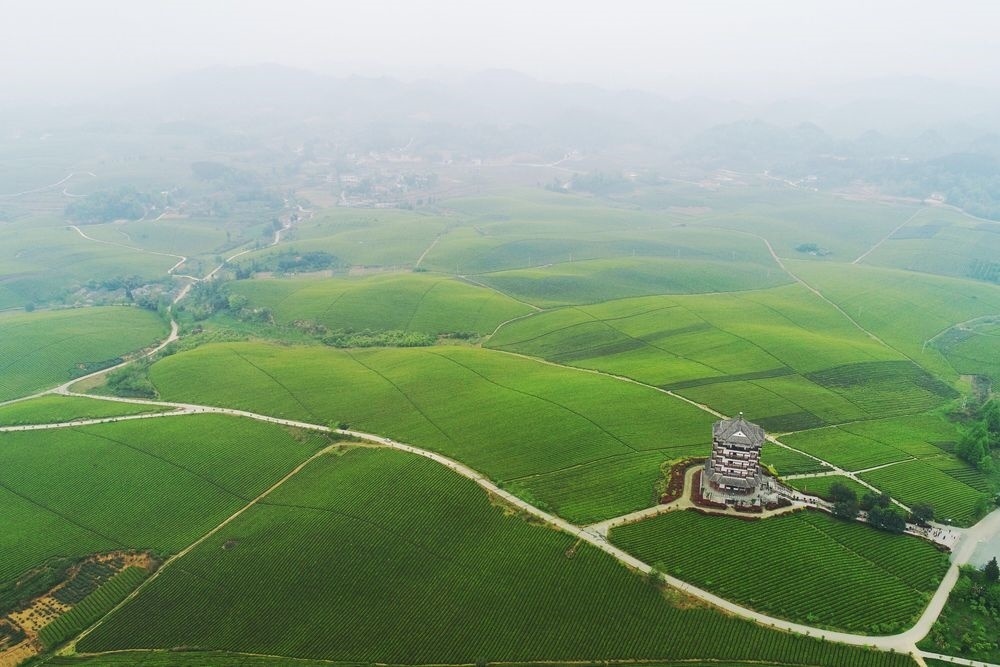 貴州省湄潭縣永興鎮(zhèn)萬畝茶海(無人機照片,2021年4月12日攝)。新華社記者 劉續(xù) 攝