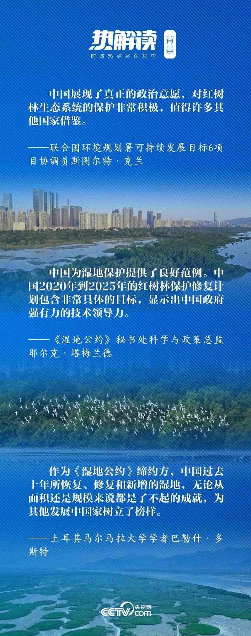 多國(guó)專家學(xué)者表示,中國(guó)紅樹(shù)林保護(hù)修復(fù)成績(jī)的背后,是美麗中國(guó)建設(shè)為全球生態(tài)環(huán)境治理提供的可借鑒路徑與經(jīng)驗(yàn)。