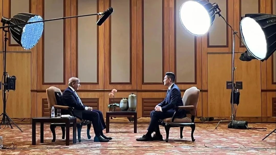 △總臺(tái)主持人王冠專訪巴基斯坦總理夏巴茲·謝里夫