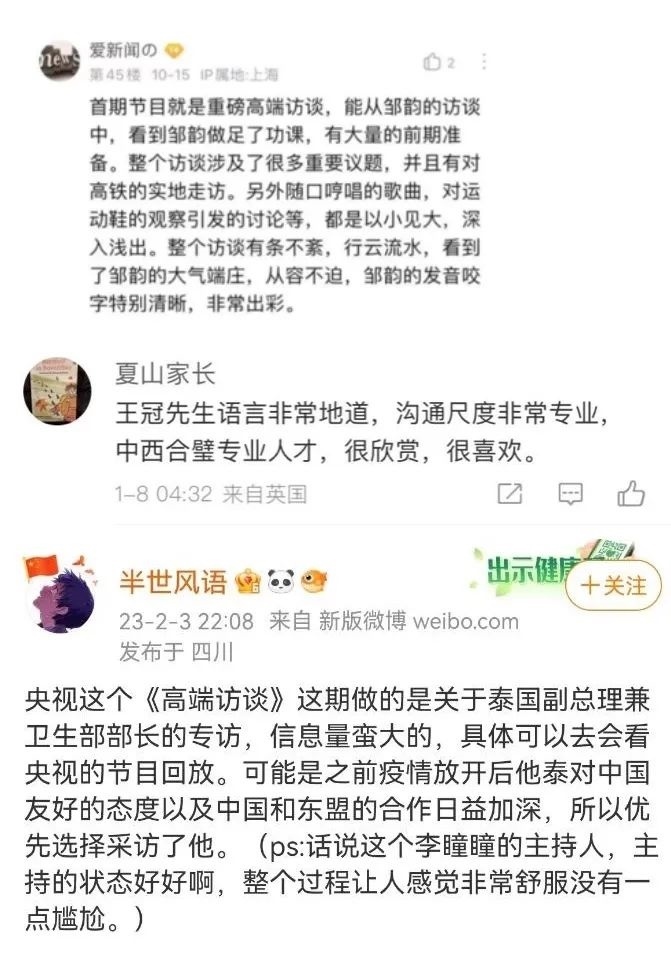 開(kāi)播以來(lái),《高端訪談》節(jié)目在海內(nèi)外廣泛傳播,獲得國(guó)際社會(huì)廣泛關(guān)注。多國(guó)主流媒體第一時(shí)間播發(fā)節(jié)目及相關(guān)報(bào)道。