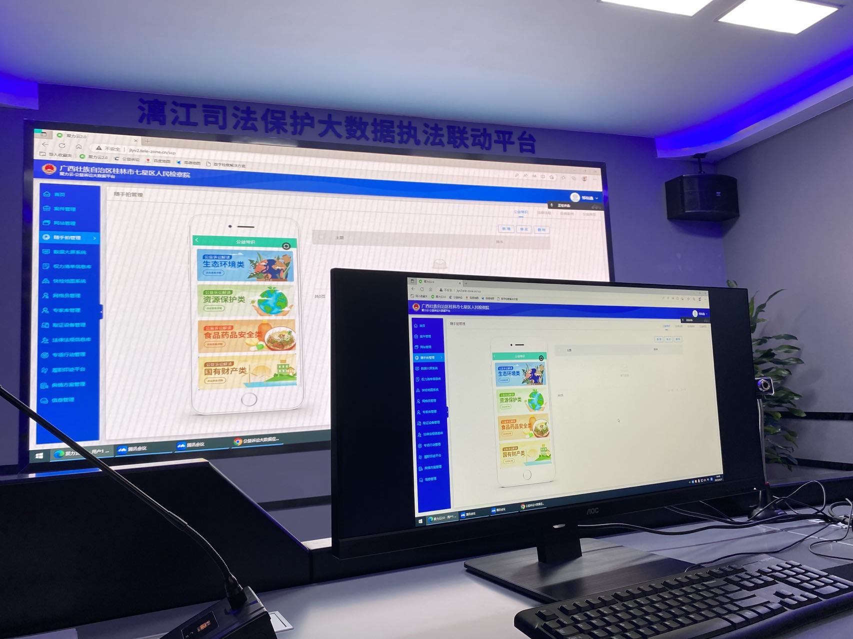 在桂林市七星區(qū)人民檢察院記者看到,漓江司法保護(hù)大數(shù)據(jù)聯(lián)動執(zhí)法中心的大屏幕上,漓江水域事實情況清晰可見,檢察公益訴訟大數(shù)據(jù)一覽無余,綜合執(zhí)法大數(shù)據(jù)統(tǒng)一匯總在了這里。