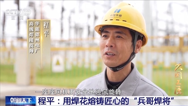 華能德州電廠高級(jí)焊接技師 程平:這十來(lái)年,新能源迎來(lái)了大的發(fā)展,每次看到經(jīng)過(guò)我的手,一座座風(fēng)機(jī)更安全地迎風(fēng)旋轉(zhuǎn),能夠參與新能源的建設(shè),為國(guó)家出一份力,見(jiàn)證它的發(fā)展進(jìn)程,我感到自己非常驕傲也很自豪。