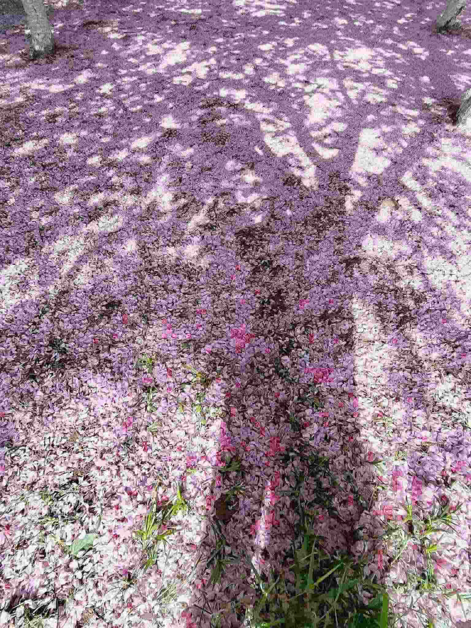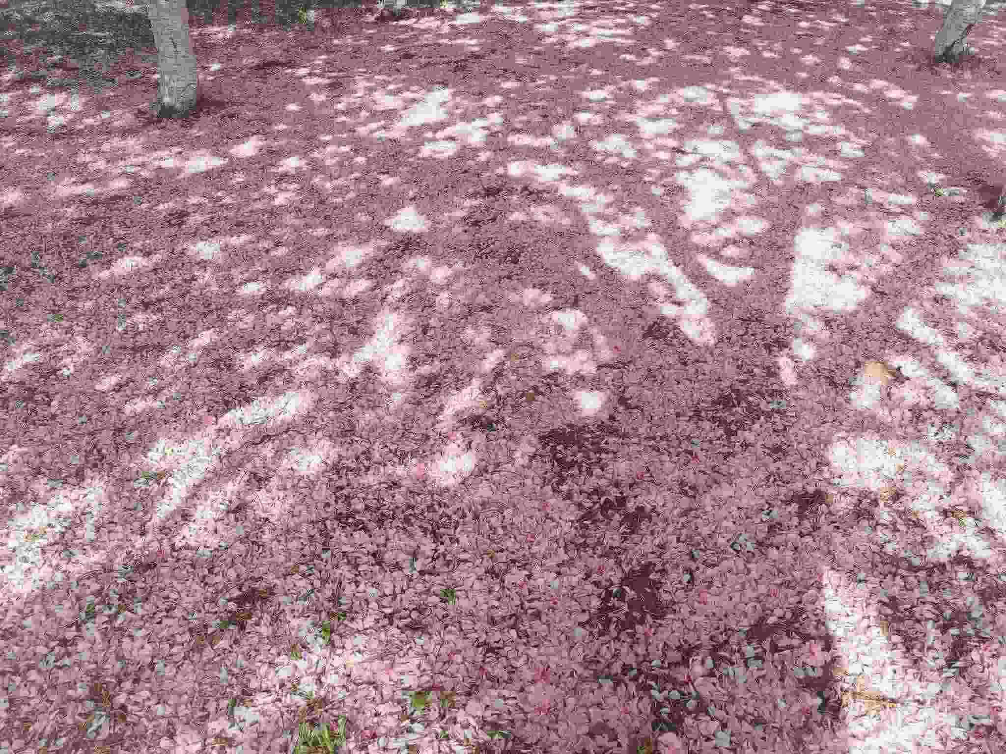 2023年4月29日,青島中山公園,經(jīng)歷風(fēng)雨之后,櫻花樹下落了厚厚一層花瓣。視覺(jué)中國(guó)