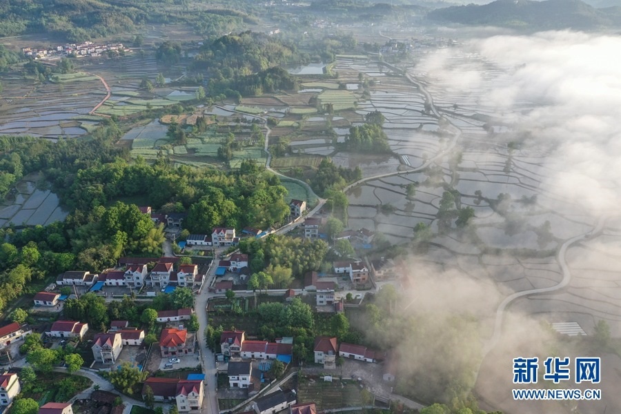 春日清晨,航拍安徽省宣城市旌德縣興隆鎮(zhèn)三山村,線條優(yōu)美的梯田、若隱若現(xiàn)的村莊、濃淡相宜的云霧、變幻莫測的朝霞,描繪出一幅幅美麗的鄉(xiāng)村畫卷。