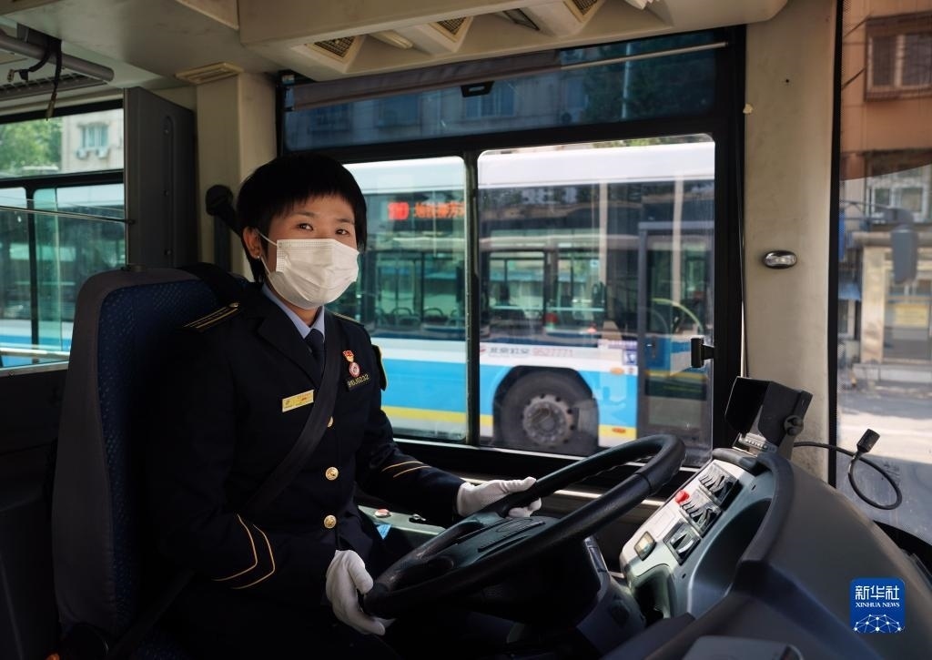 5月1日,在位于北京市朝陽區(qū)的柳芳公交場(chǎng)站,104路公交車駕駛員高國然駕駛車輛準(zhǔn)備駛出。