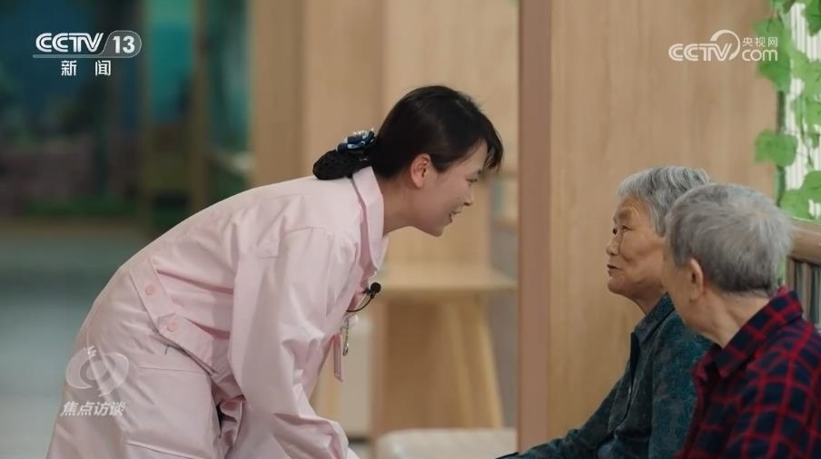 重慶市江津區(qū)雙福街道養(yǎng)老服務中心護理員熊曉麗:“這個時候我還是一樣的,先陪伴,先讓他對我產生依賴,然后我在跟他聊天的過程當中才發(fā)現,原來王爺爺以前喜歡唱歌?!?/p>