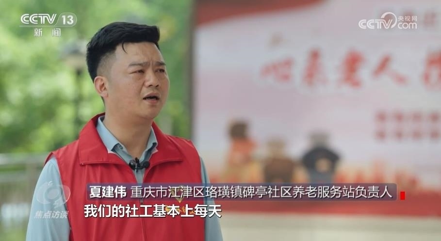 重慶市江津區(qū)珞璜鎮(zhèn)碑亭社區(qū)養(yǎng)老服務站負責人夏建偉:“一天下來,滿滿當當的,我們的社工基本上每天都超過了兩萬三千步的樣子。雖然說很累,但是每一個社工都很愉快,都覺得在這個過程當中找到了快樂,也找到了成就感。”