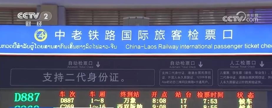 記者 范紫霄:現(xiàn)在是中午12時30分,這趟列車已經(jīng)到達了磨憨站,也是這趟列車在我國境內(nèi)的最后一站。跨境前往老撾的旅客需要攜帶全部行李下車辦理通關(guān)等一些相關(guān)手續(xù),然后繼續(xù)返回這列我們乘坐的D887次列車,通過畫面中的友誼隧道,跨越國境,在今天傍晚6時38分抵達老撾首都萬象。