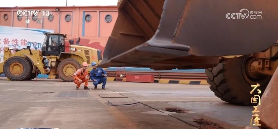 這臺(tái)自重30多噸的大型裝載機(jī),輪胎有一人多高。在清艙作業(yè)時(shí),郭凱的視線(xiàn)被鏟斗擋住了,鏟斗和離艙壁的距離,只能靠手感和經(jīng)驗(yàn)來(lái)判斷。而郭凱把裝載機(jī)鏟斗和艙壁的距離精確地控制在了1毫米。如果距離大于1毫米,壁上的礦石就難以刮干凈;小于1毫米,就會(huì)刮到艙壁。剎車(chē)、油門(mén)、落大臂、起翻斗,郭凱一連貫動(dòng)作行云流水、人車(chē)合一。