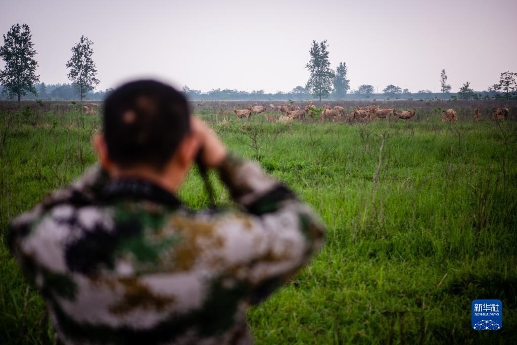 巡護(hù)隊(duì)伍通過(guò)望遠(yuǎn)鏡、長(zhǎng)焦相機(jī)、無(wú)人機(jī)、視頻監(jiān)測(cè)塔、紅外相機(jī)等工具,對(duì)1500余頭麋鹿進(jìn)行日常監(jiān)測(cè)、年節(jié)律周期監(jiān)測(cè)、種群動(dòng)態(tài)監(jiān)測(cè),并對(duì)保護(hù)區(qū)內(nèi)的氣象數(shù)據(jù)、水文數(shù)據(jù)、地表水質(zhì)數(shù)據(jù)、植被類型以及其他野生動(dòng)物情況進(jìn)行監(jiān)測(cè)記錄。他們還需要承擔(dān)卡口值守、應(yīng)急管理等工作。在他們的悉心照料下,這里成為適宜麋鹿種群棲息的家園。