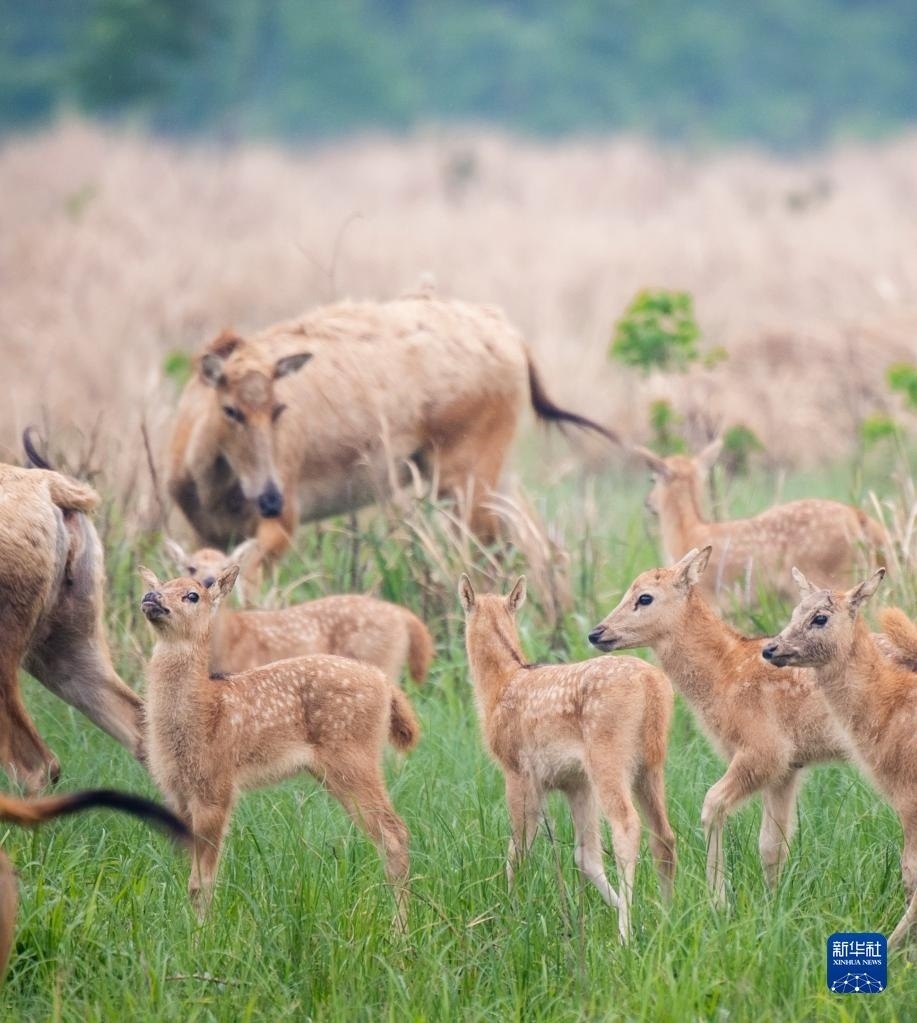 陽(yáng)春三月,草長(zhǎng)鶯飛,一群麋鹿在草地上悠閑漫步,幾頭幼鹿不時(shí)穿梭其中……近期,在位于湖北天鵝洲長(zhǎng)江故道邊的石首麋鹿國(guó)家級(jí)自然保護(hù)區(qū),麋鹿大家庭迎來(lái)了一批新成員。