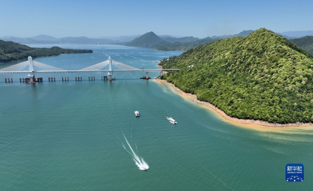 5月2日,游客在浙江省舟山市朱家尖大青山里沙景區(qū)游玩(無人機照片)。