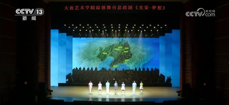在遼寧,由大連藝術(shù)學(xué)院原創(chuàng)的大型舞臺劇《光榮·夢想》在大連、沈陽等地上演。舞臺劇以“九一八”事變?yōu)闅v史背景起點,生動再現(xiàn)了東北人民抗日、解放戰(zhàn)爭等紅色故事。近千名參演師生融合交響樂、朗誦、舞蹈等多種藝術(shù)表現(xiàn)形式,引起現(xiàn)場觀眾強(qiáng)烈共鳴。