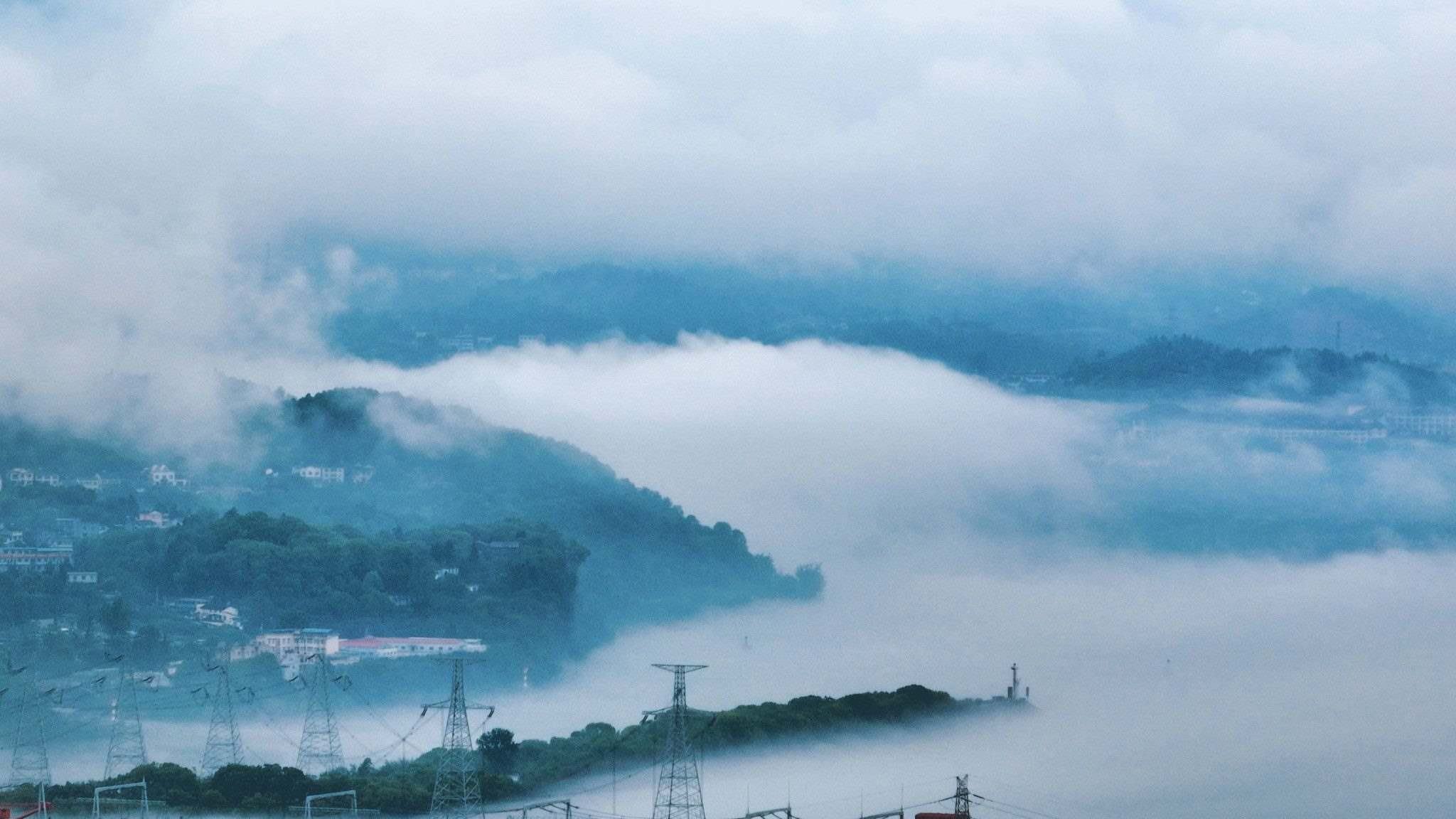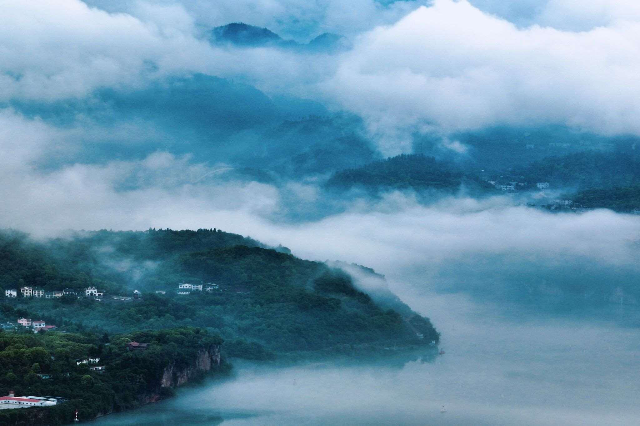 湖北宜昌:雨后長(zhǎng)江沿岸薄霧迷蒙
