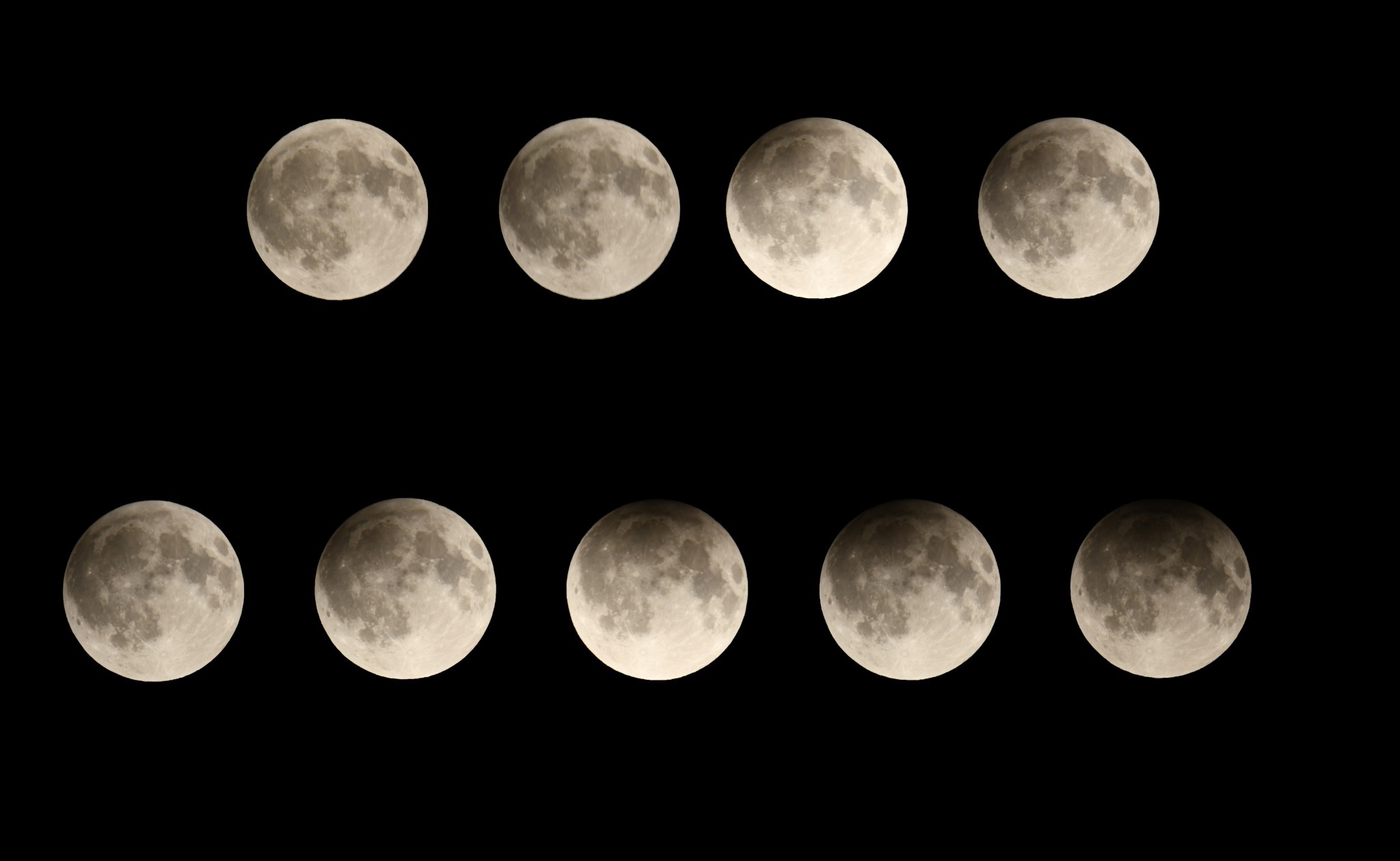 5月5日,2023年首場(chǎng)月食登場(chǎng),這是一次半影月食,月亮的“臉色”從亮變暗,再?gòu)陌底兞?,我?guó)可見全過程(拼版照片)。視覺中國(guó)