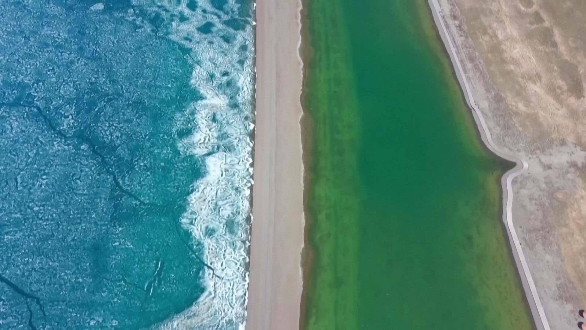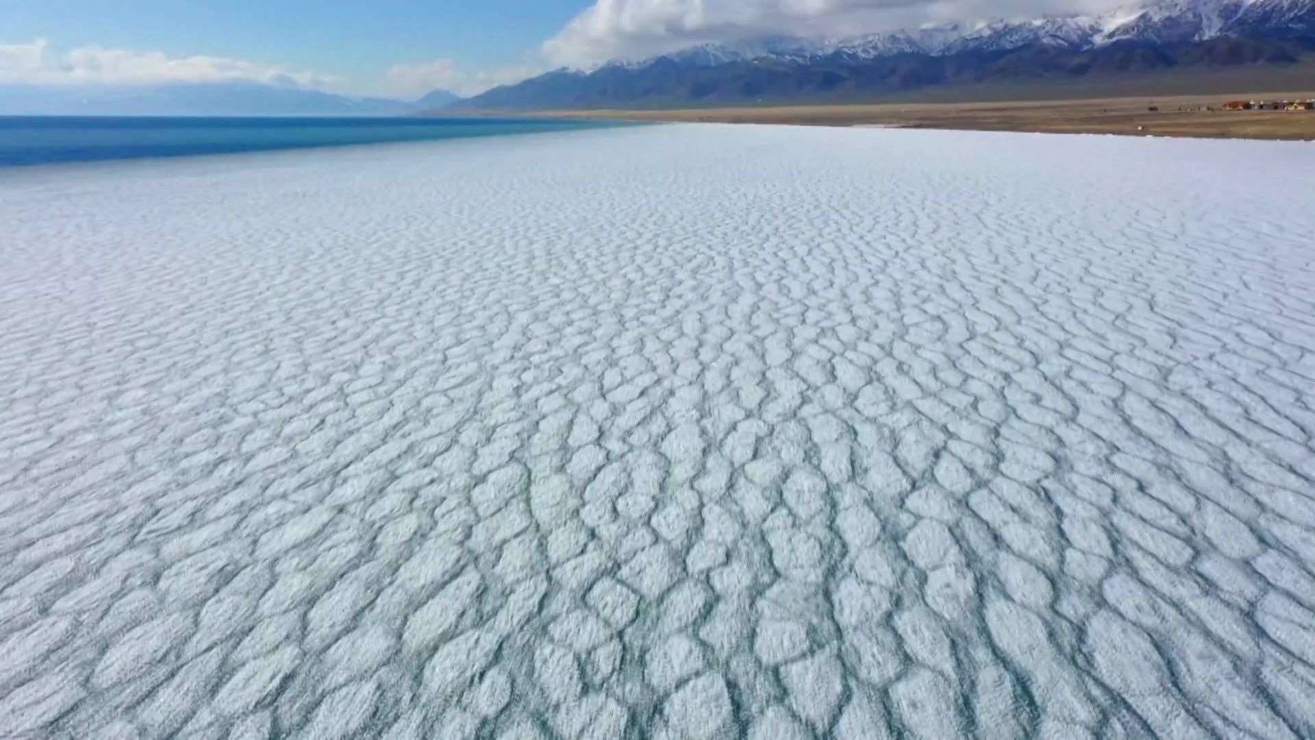 新疆賽里木湖冰層碎裂現(xiàn)“冰推”景觀