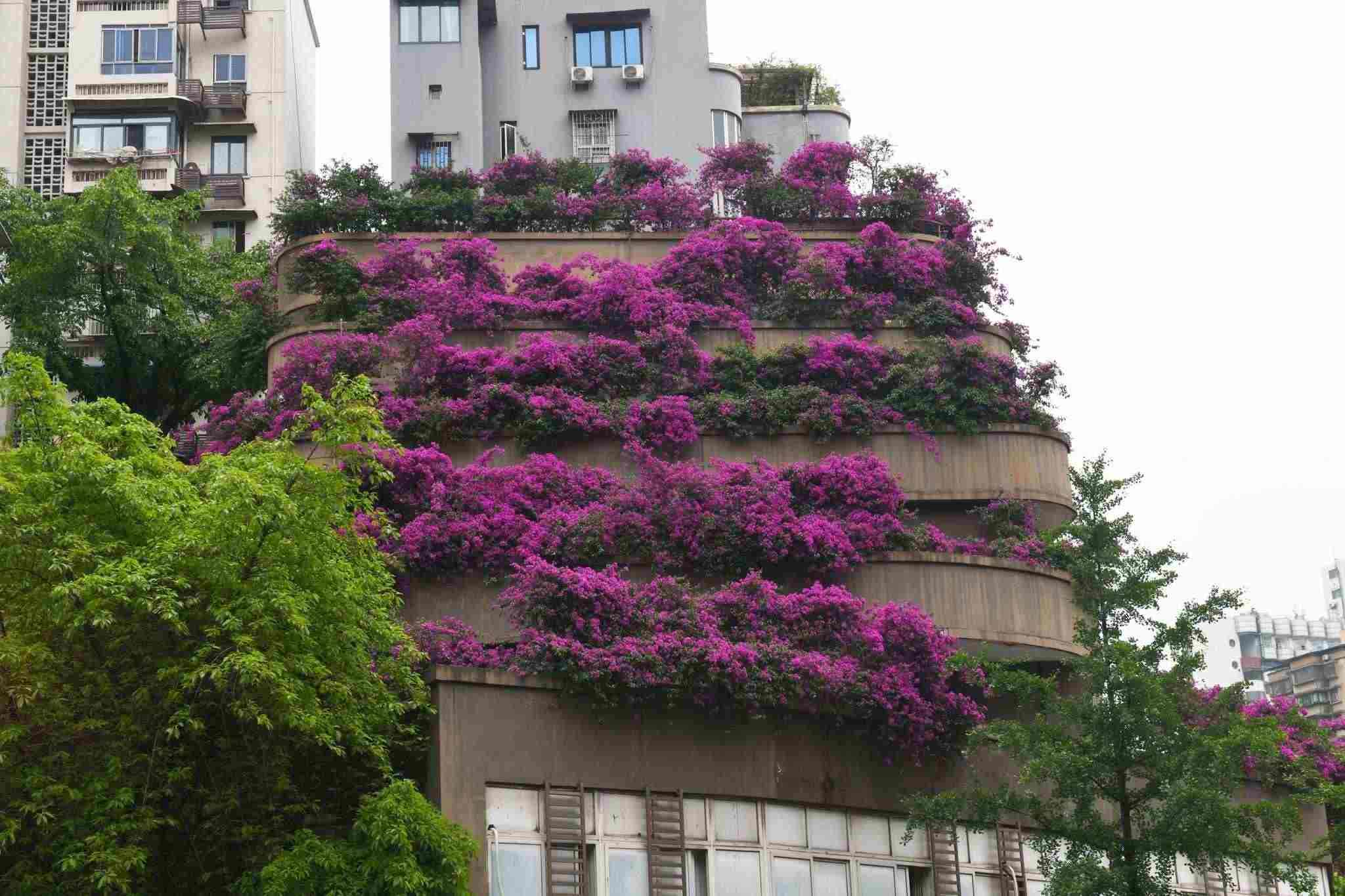 重慶一建筑被三角梅層層環(huán)繞