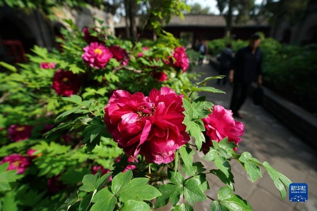 近日,山西太原雙塔寺景區(qū)的數(shù)千株牡丹花競相綻放,吸引游人前來觀花賞景。
