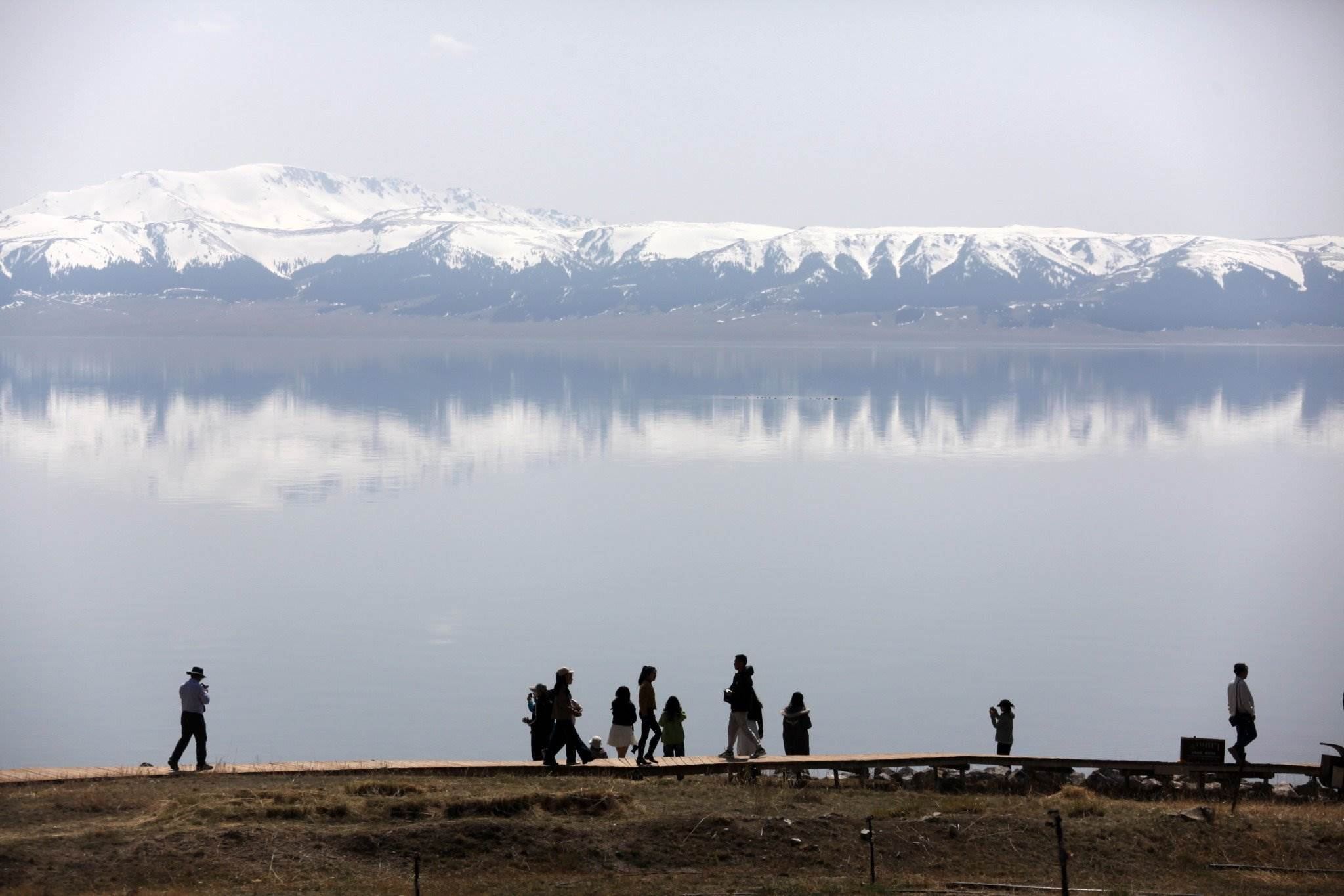 2023年5月8日,新疆博州,賽里木湖景區(qū)風(fēng)光秀美,吸引游客前來(lái)游玩。視覺(jué)中國(guó)