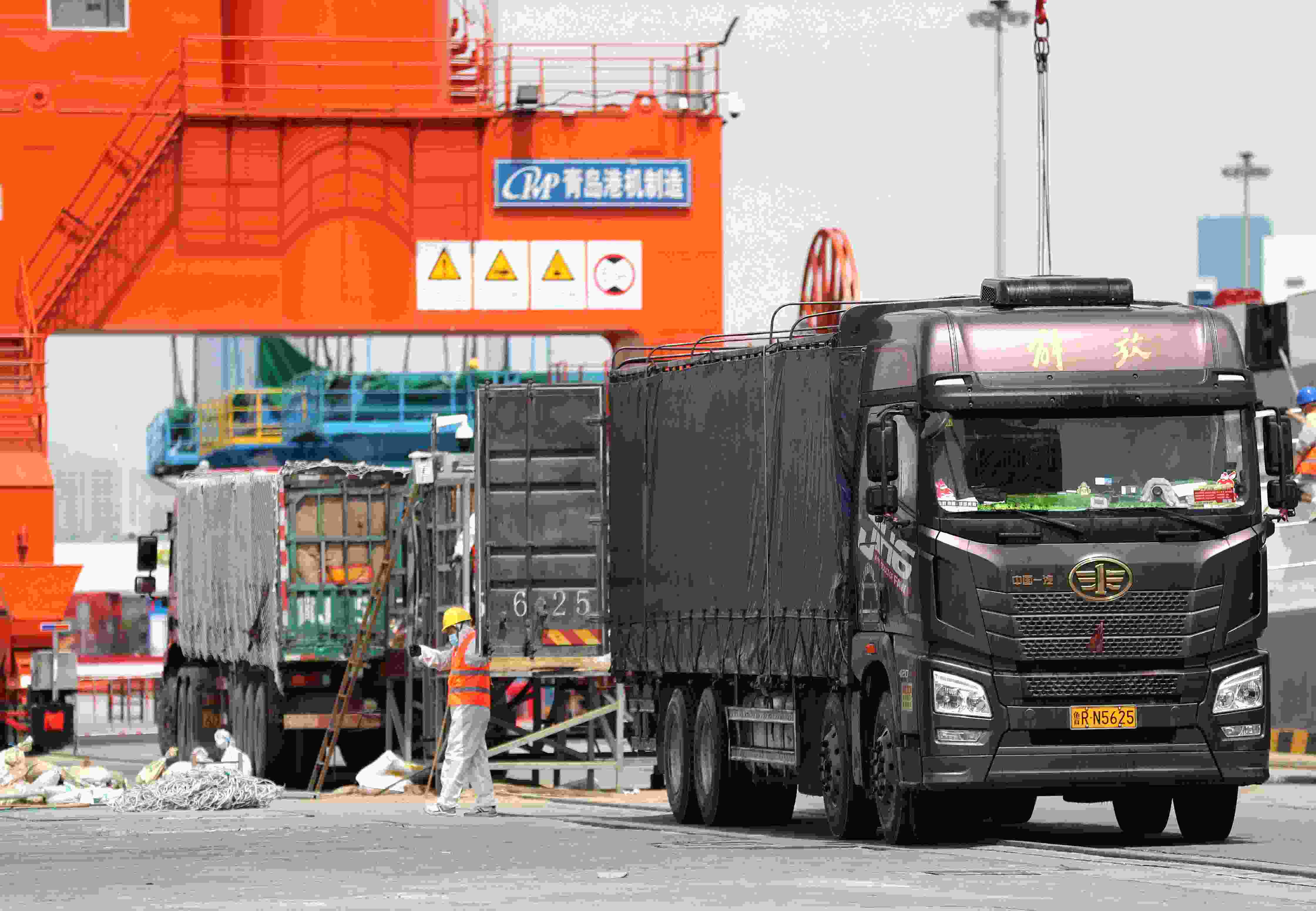 當(dāng)日,在山東港口青島港前灣集裝箱碼頭, “加洛韋”輪在黃島邊檢部門的保障下,滿載的3000余頭活牛,經(jīng)過裝卸轉(zhuǎn)運,全部進(jìn)入指定隔離場,進(jìn)入隔離檢驗期。