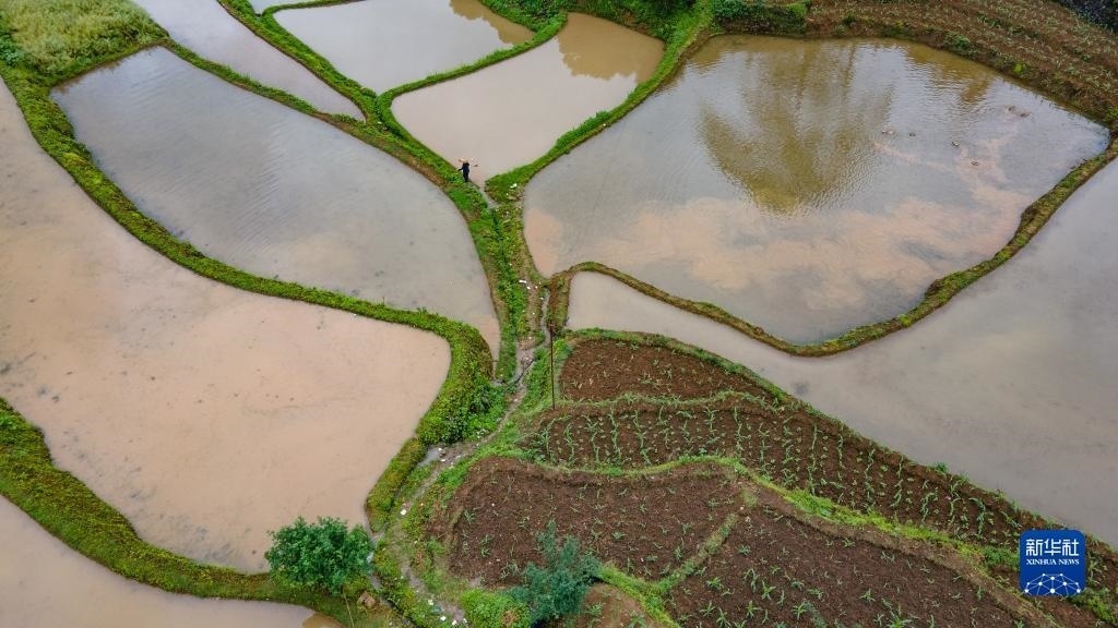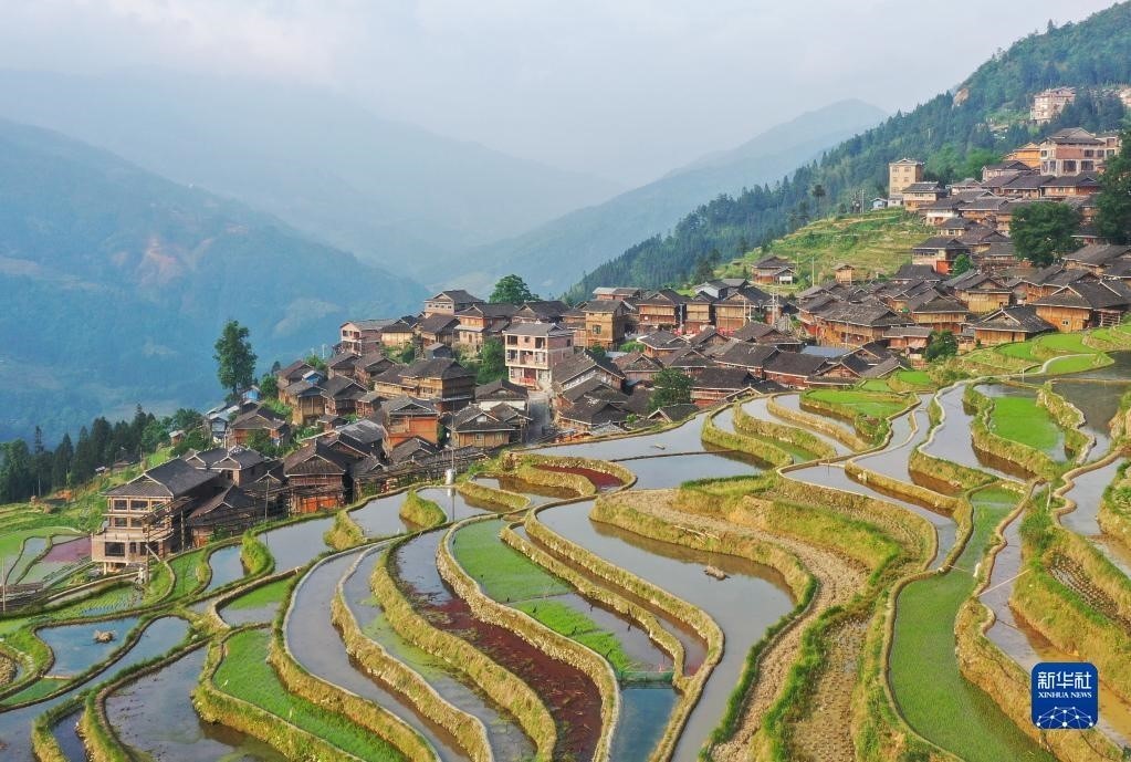 5月6日拍攝的貴州省從江縣加榜鄉(xiāng)加車村的梯田(無人機照片)。