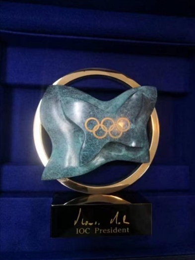 據(jù)介紹,該獎杯由被譽(yù)為“當(dāng)代米開朗基羅”的西班牙國寶級雕塑家Rosa Serra設(shè)計(jì)制作,基座配有現(xiàn)任國際奧委會主席巴赫的親筆簽名。該獎杯以在瑞士洛桑的國際奧委會總部大樓“奧林匹克之家”為原型設(shè)計(jì),大樓為和平鴿造型,象征著和平與友誼,是奧林匹克運(yùn)動傳遞的最重要信息之一。據(jù)悉,“奧林匹克之家”大樓于2019年6月23日國際奧林匹克日正式啟用。