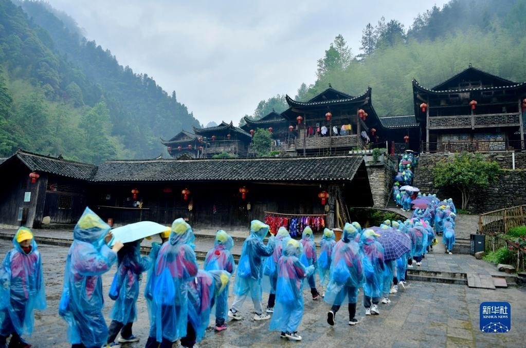 湖北省宣恩縣彭家寨風(fēng)景區(qū)依托保存完好的土家古吊腳樓群落,通過完善研學(xué)基礎(chǔ)設(shè)施,吸引各地學(xué)校組織學(xué)生來此開展土家民俗文化、土家建筑等研學(xué)活動。古寨研學(xué)不僅讓學(xué)子們收獲成長,同時也豐富了山區(qū)旅游的內(nèi)涵,為帶動鄉(xiāng)村振興注入了新動能。新華社發(fā)(宋文攝)