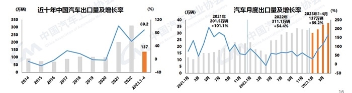 中新網(wǎng)5月11日電 (中新財(cái)經(jīng) 葛成)11日,中汽協(xié)發(fā)布汽車產(chǎn)銷數(shù)據(jù)。2023年4月,汽車產(chǎn)銷分別完成213.3萬輛和215.9萬輛,同比分別增長(zhǎng)76.8%和82.7%;新能源汽車產(chǎn)銷分別完成64萬輛和63.6萬輛,同比均增長(zhǎng)1.1倍;汽車企業(yè)出口37.6萬輛,同比增長(zhǎng)1.7倍。