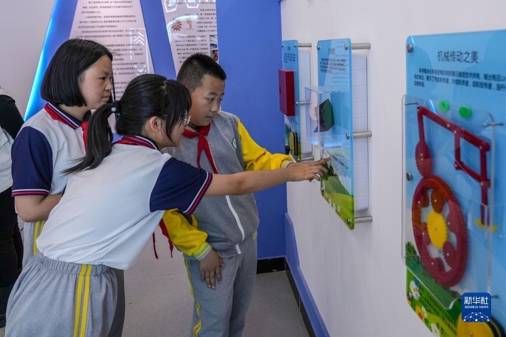 5月11日,小學生在馬店村科普體驗中心內(nèi)體驗科普展品。