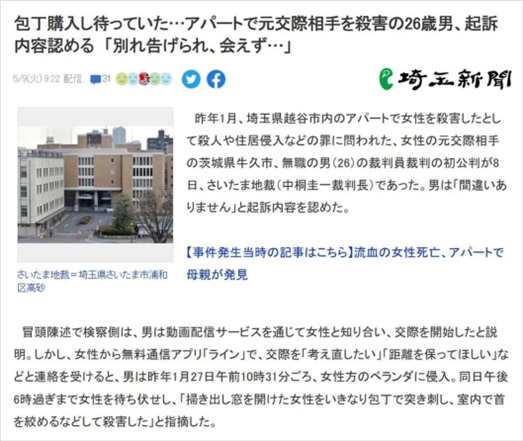 ·日本茨城縣牛久市一名26歲失業(yè)男子因不滿女友提分手,潛入女方家陽臺蹲守近8小時,等她出來收衣服時將其殺害。