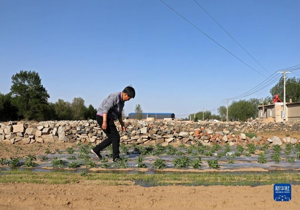張連琴在維護自家菜地(5月7日攝)。
