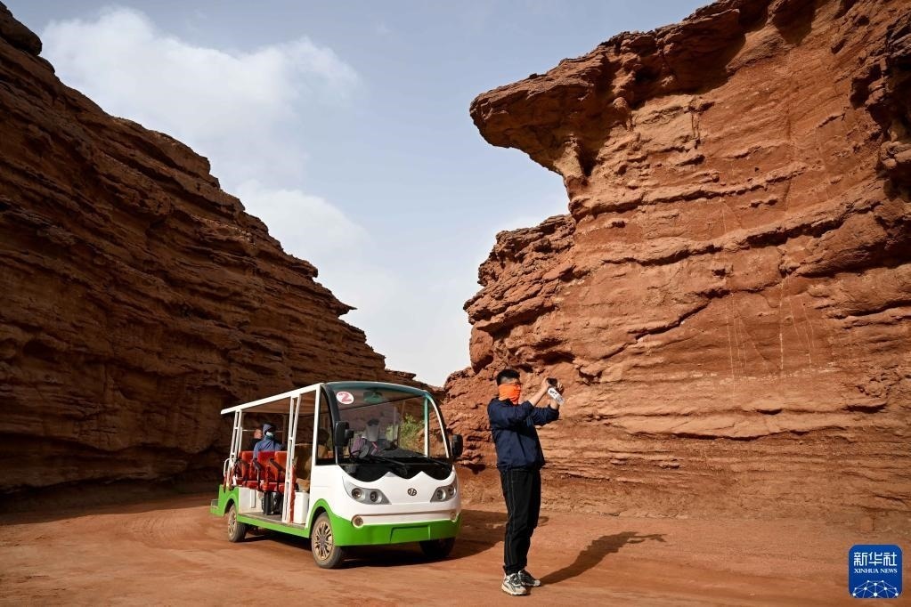 5月13日,游客在內(nèi)蒙古阿拉善盟阿拉善左旗西部夢幻峽谷景區(qū)參觀游玩。   新華社記者 貝赫 攝