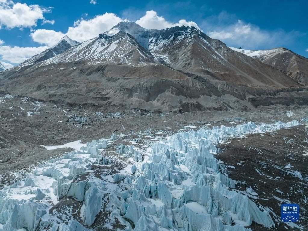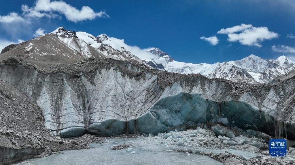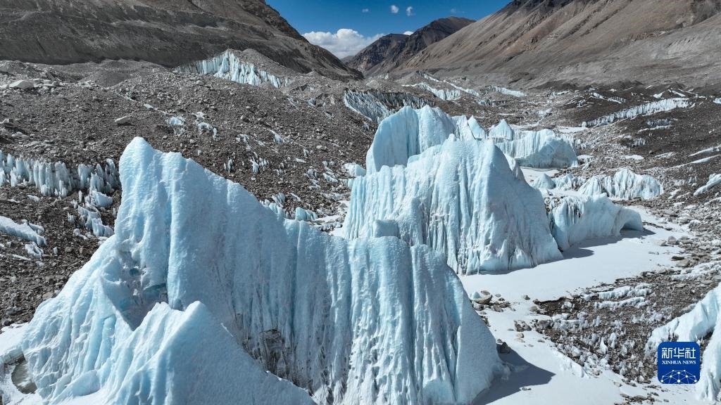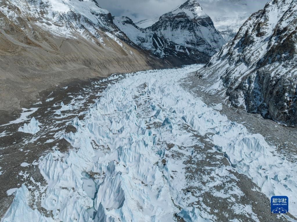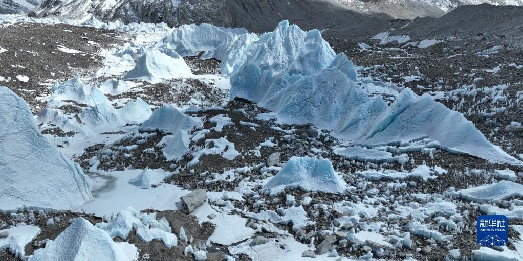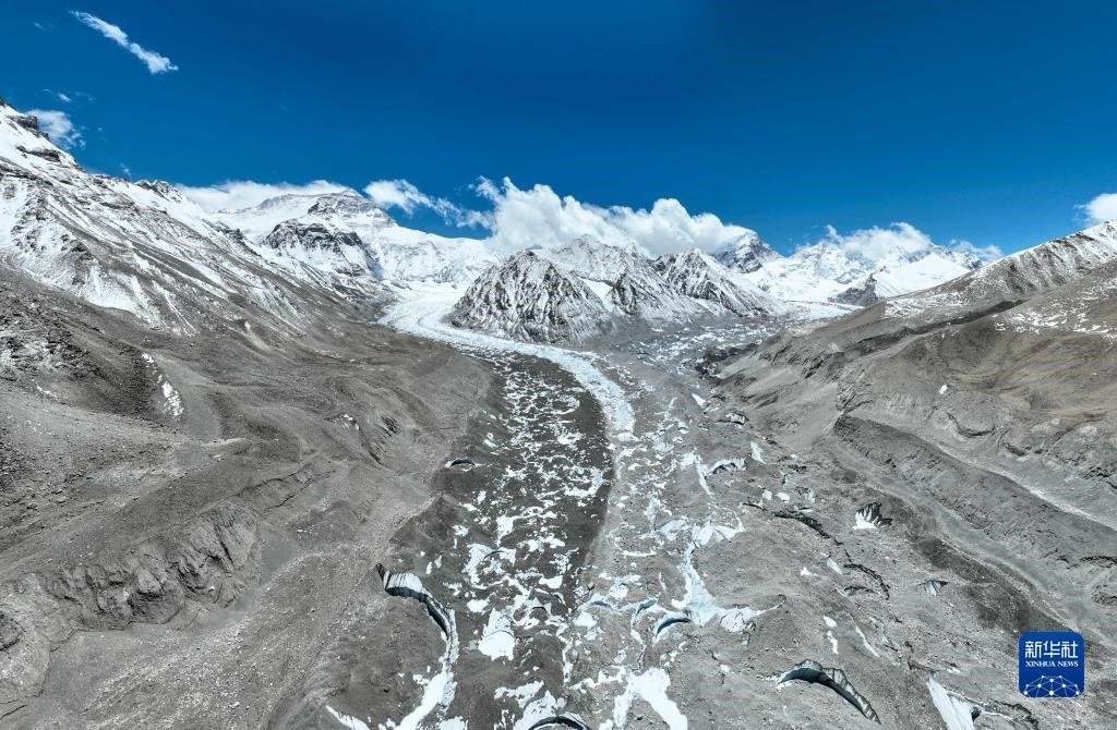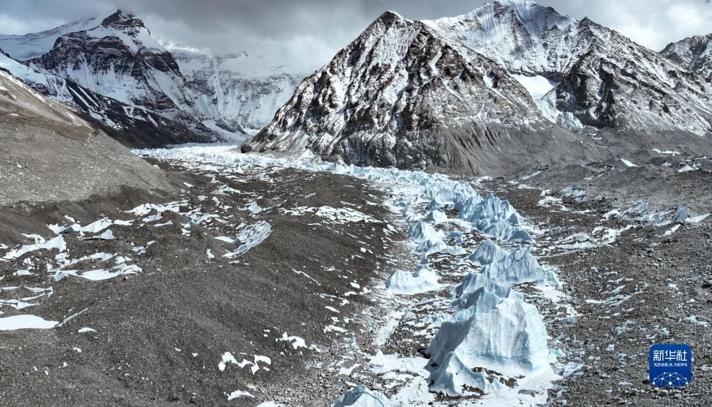 這是珠峰腳下的中絨布冰川(5月15日攝,無人機照片)。