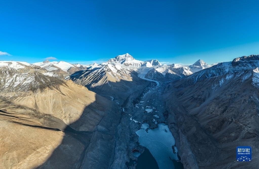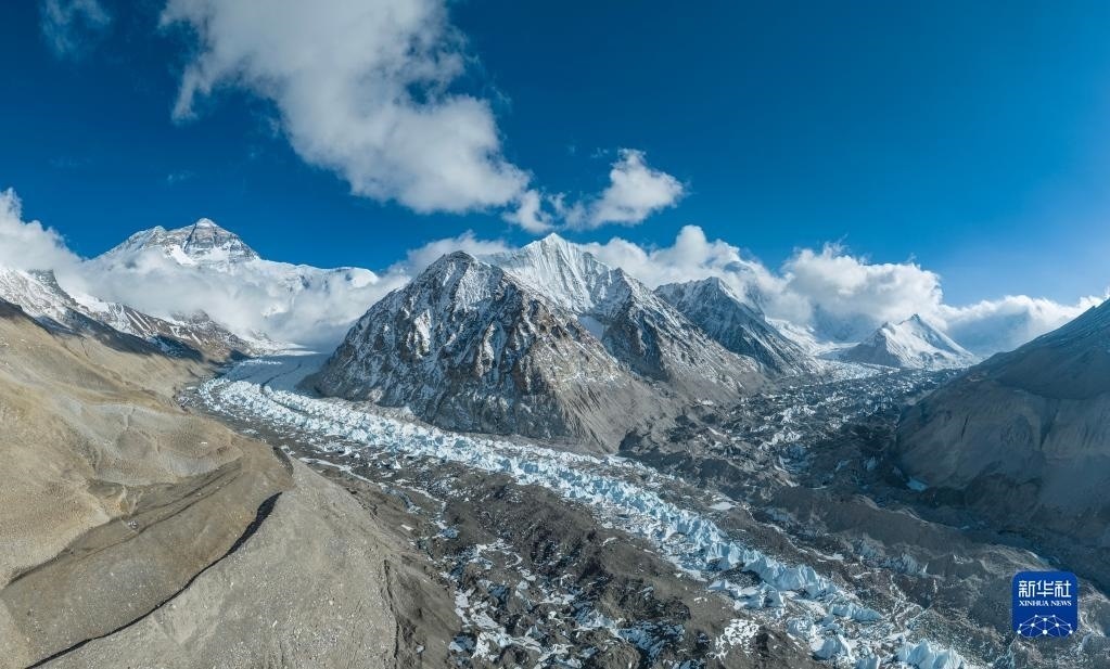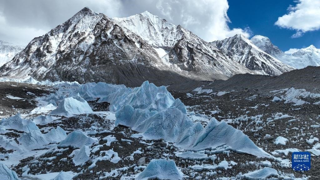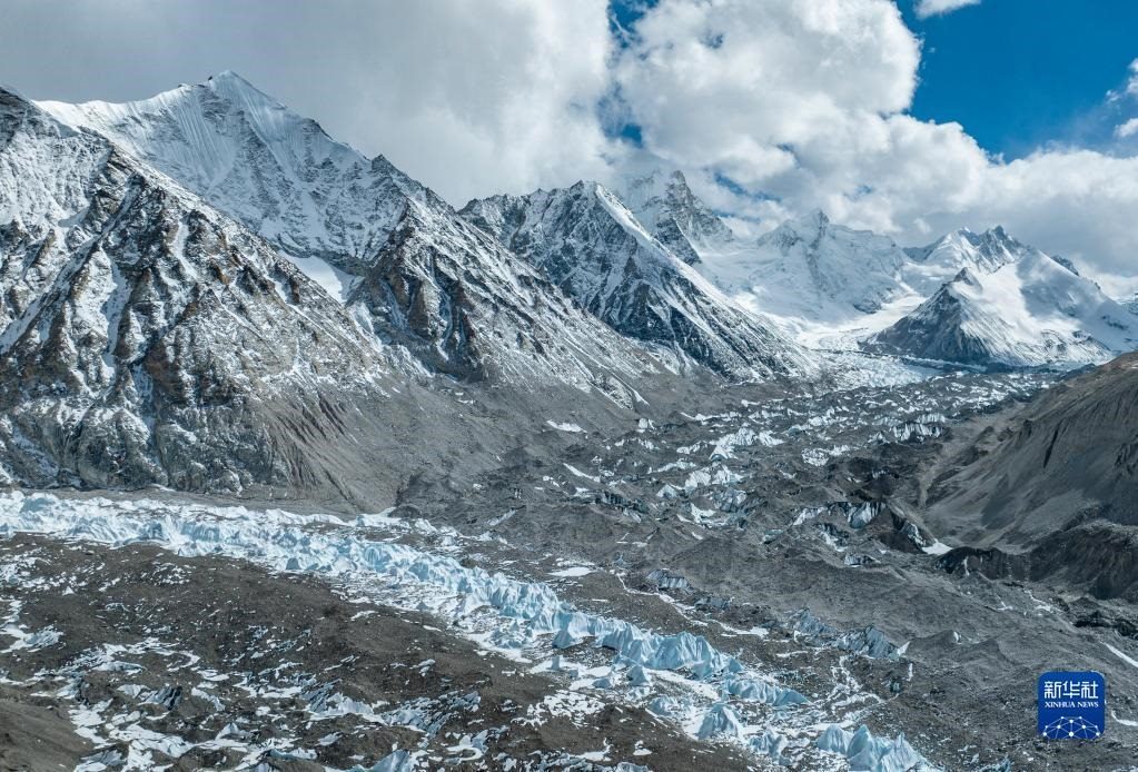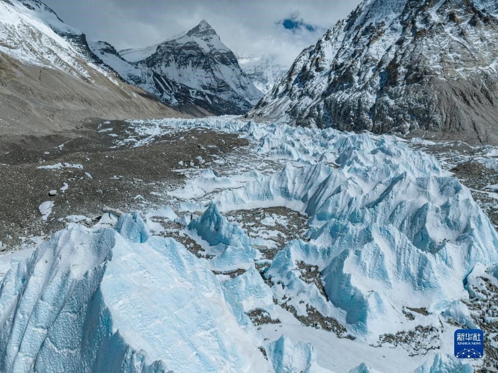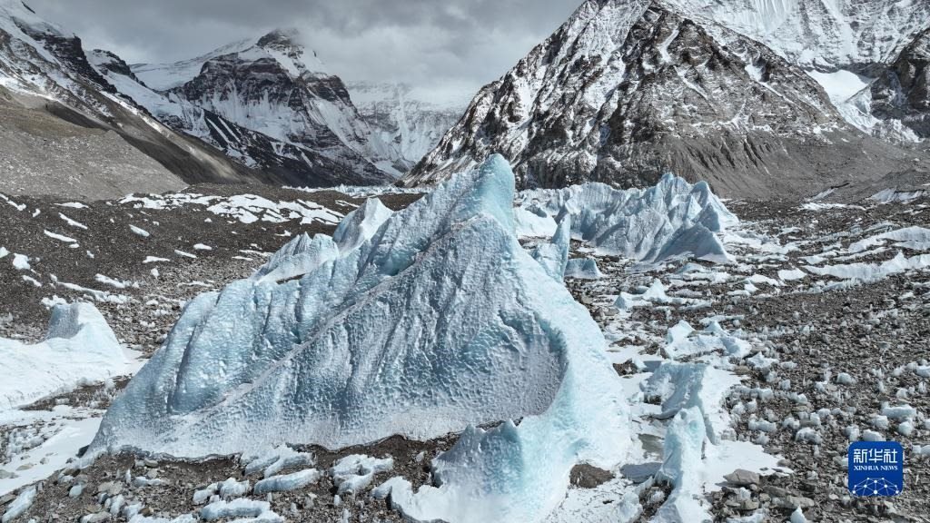 這是珠峰腳下的中絨布冰川(5月15日攝,無人機照片)。