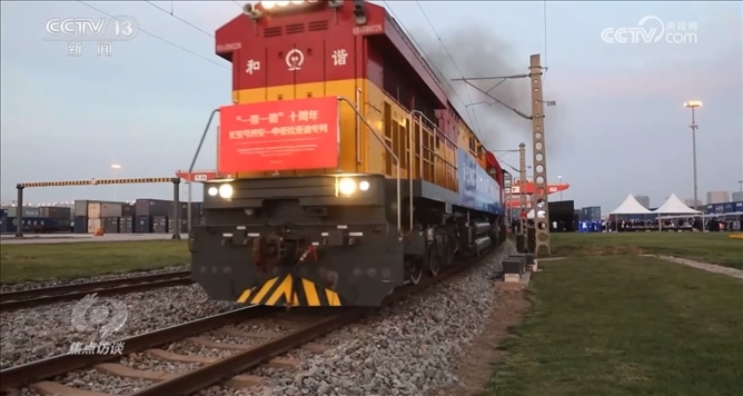 就在上個(gè)月,為紀(jì)念“一帶一路”十周年特別開(kāi)行的中歐班列——“一帶一路”十周年長(zhǎng)安號(hào)西安—中亞專(zhuān)列從西安國(guó)際港務(wù)區(qū)發(fā)車(chē)。2013年11月,首列中歐班列長(zhǎng)安號(hào)正是由這里出發(fā),開(kāi)往哈薩克斯坦。從這里啟程的長(zhǎng)安號(hào),從最初的年開(kāi)行46列發(fā)展到去年的4600多列,十年增長(zhǎng)了100倍。十年來(lái),長(zhǎng)安號(hào)累計(jì)開(kāi)行超過(guò)1.6萬(wàn)列。其中,中亞五國(guó)開(kāi)行量達(dá)到4250列,為促進(jìn)中國(guó)同中亞互聯(lián)互通與經(jīng)貿(mào)合作發(fā)揮了重要作用。