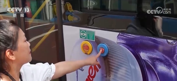 無障礙公交車后門下方安裝了一個伸縮踏板,可以連接地面與車廂,方便輪椅、嬰兒車等出入車廂。車廂內還專門設置了供輪椅停放的區(qū)域,并配備有護板和安全帶。