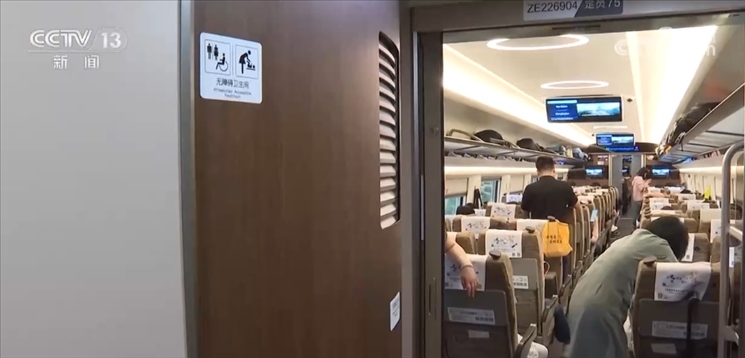 鐵路部門也推出了一系列無障礙服務舉措。由北京西開往湖南邵陽的G811次智能復興號動車組,16節(jié)車廂中的第4號、第12號車廂的150個座位優(yōu)先提供給殘障旅客,也被稱作“無障礙車廂”,里面配備了更寬闊的通過門、無障礙衛(wèi)生間、輪椅放置區(qū)、盲文服務提示標識等。