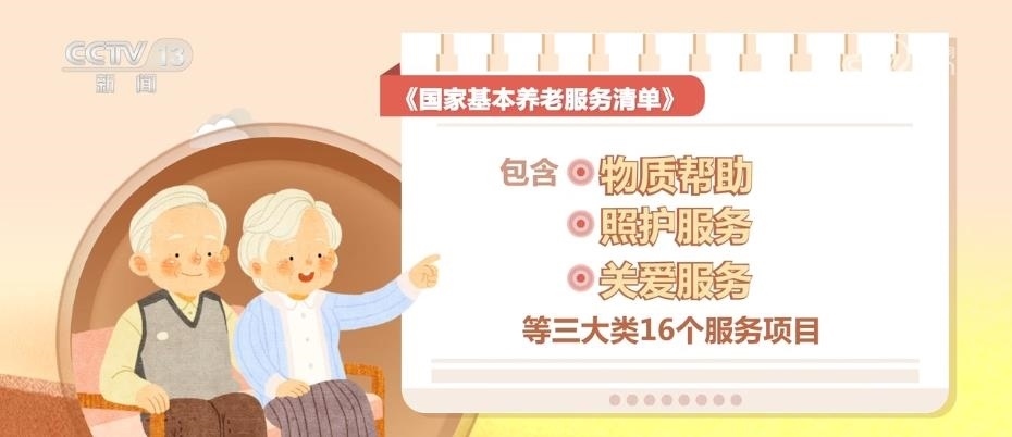 《國(guó)家基本養(yǎng)老服務(wù)清單》的內(nèi)容,包含物質(zhì)幫助、照護(hù)服務(wù)、關(guān)愛服務(wù)等三大類16個(gè)服務(wù)項(xiàng)目。