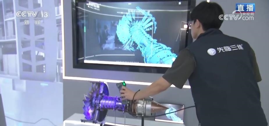 這是一款高精度的手持三維測(cè)量設(shè)備,工程師正在測(cè)量一款航空發(fā)動(dòng)機(jī)模型的內(nèi)部結(jié)構(gòu),有了尺寸的信息之后,維修就可以根據(jù)內(nèi)部復(fù)雜的結(jié)構(gòu)去設(shè)計(jì)精準(zhǔn)的維修部件。它的難點(diǎn)是要求這款裝備在各種環(huán)境,面對(duì)各種材質(zhì)的測(cè)量時(shí)候,都能夠保持一致性的精度穩(wěn)定性。像汽車、能源裝備的三維尺寸測(cè)量,它都能做到,并且實(shí)現(xiàn)了研發(fā)、生產(chǎn)到普及應(yīng)用。讓不少制造企業(yè),嘗到了數(shù)字設(shè)備帶來的“甜頭”。