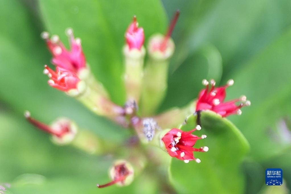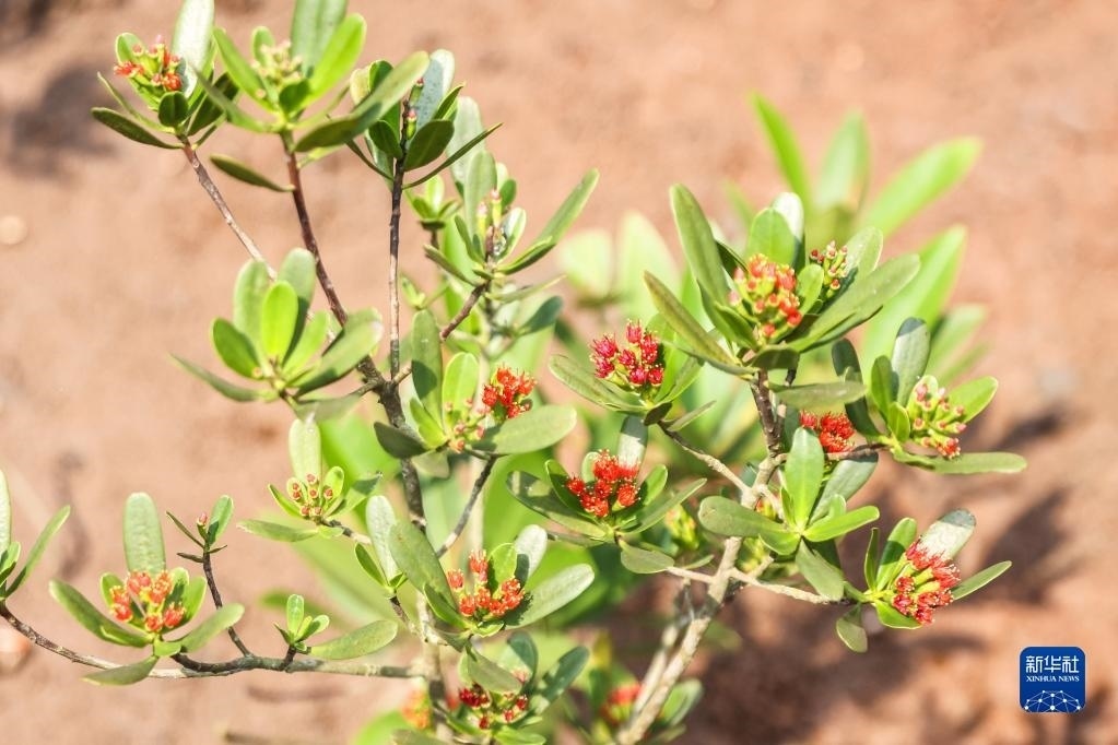 近日,在海南東寨港國家級(jí)自然保護(hù)區(qū)里的瀕危紅樹植物紅欖李迎來花期。據(jù)悉,紅欖李是珍稀瀕危紅樹植物、國家一級(jí)保護(hù)植物,被譽(yù)為紅樹林中的“大熊貓”。國內(nèi)一度僅存14株。2014年,海南東寨港國家級(jí)自然保護(hù)區(qū)管理局成功培育出紅欖李幼苗,并建立紅欖李野外種植基地。如今這里已有超過20畝、約2300株的紅欖李。   新華社記者 張麗蕓 攝