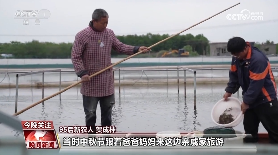 賀成林父親 賀國文:開始的時(shí)候是沒有支持他/他養(yǎng)蟹是比較非常辛苦的,平時(shí)要住在下塘邊上,半夜也要起來巡邏,風(fēng)吹日曬的看到他在養(yǎng)蟹的過程當(dāng)中一直在學(xué)習(xí),我能感受得到他能吃苦不怕困難的這種精神,才同意他。