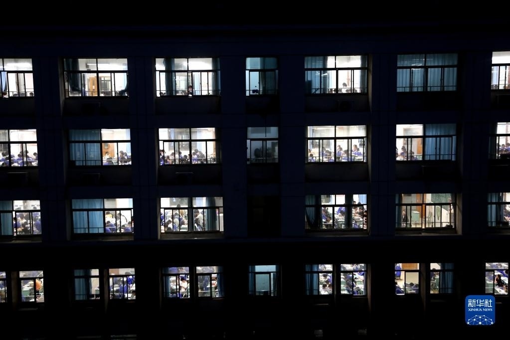 5月23日晚,在江蘇省連云港高級中學教室里,高三學生在上晚自習。