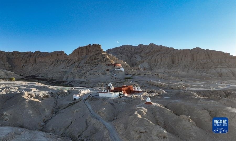 5月26日,黃昏時分的古格王國遺址(無人機照片)。